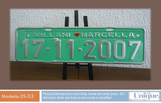 A placa pode ser instalada no carro de aluguel da Unique para seu evento, ou mesmo uma lembrança que poderá ser guardada para sempre!