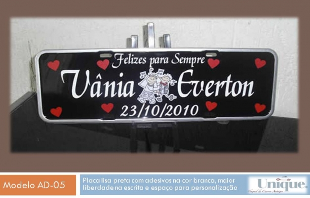 A placa pode ser instalada no carro de aluguel da Unique para seu evento, ou mesmo uma lembrança que poderá ser guardada para sempre!